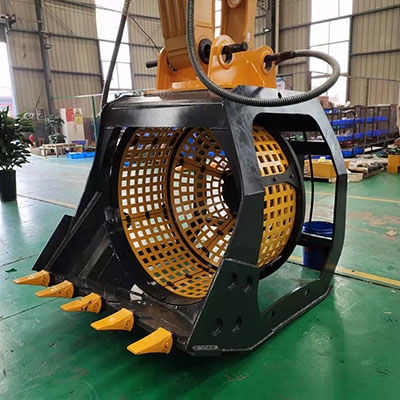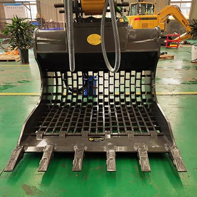 高頻篩通過液壓馬達驅動帶動篩板高速抖動,來破壞物料之間的粘附力,快速實現物料的松散、分層,增加小物料透篩機會,并且通過高頻震動增加物料與篩面的接觸,減少篩孔堵塞情況,增加透篩概率,生產效率是普通柵格挖斗的數倍,且操作簡單,方便快捷。